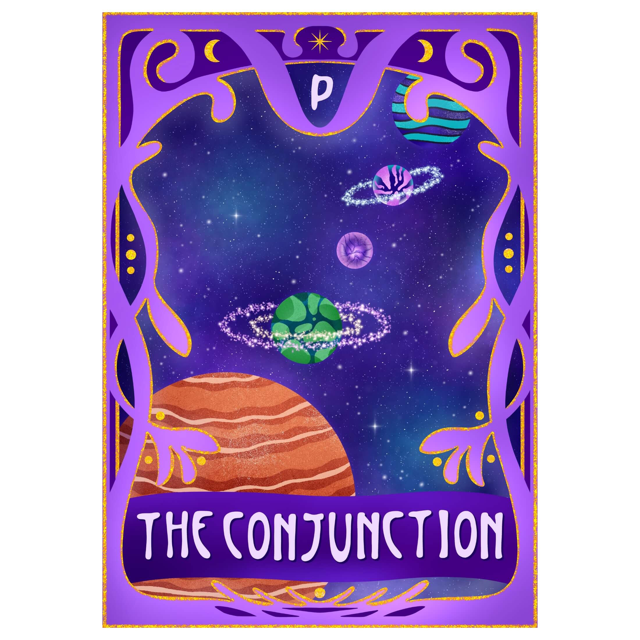 I was asked to create a mini collection of tarot-inspired cards for an immersive TTRPG adventure. The motifs on the cards are based on the adventure’s lore of the fictional, cozy fantasy village of Jinglewood and its resident fortune-teller, Madame Celestia. The hand-drawn lettering and card borders are inspired by Art Nouveau to give the whole set a mystical look.